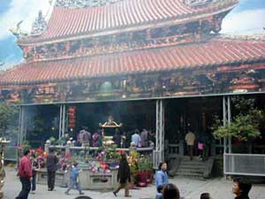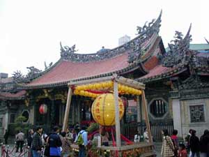 龍山寺の正面でタクシーを降りて中に入ると何となく浅草の浅草寺と似たような雰囲気だ。