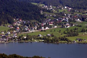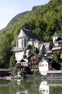 そのうち進行方向にの左手に湖が見え出すと、目的地ハルシュタットはもうすぐだ。 |