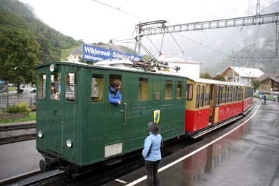 ラウターブルネンでBOBの列車に乗り継ぎ、途中で本来なら今日乗っているはずだったシーニゲプラッテ鉄道を横目に見ながら、インターラーケンオスト駅に到着。