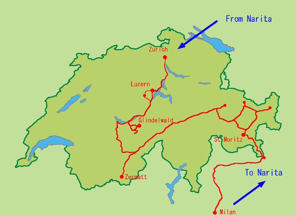 | プロローグ 2年ぶりのヨーロッパ旅行は今回で2度目となるスイスになったが、昨年他界した義父がスイスに言ってみたいと言っていたのを受けて、福岡に一人になってしまっている義母への親孝行と言うことで行き先が決まった。 ただ、妻もスイスは行ったことがないので定番の観光地ははずせないと言うことから2002年の旅行とほとんど同一の行程となった。 前回と全く同じと言いつつも、もう少し時間を取っておくべきだったと後悔したグリンデルワルド周辺での宿泊を増やし、それなりに細かい修正を加えて行くこととなった。 計画を立てだして最大の問題となったのは、現在スイスにはJALが毎日運行されていないことで、費用圧縮のため義母の航空券は 特典航空券にしているのだが、結局帰りの日程が合わない事からミラノ経由でルートを確定することとした。 さらに誤算だったのは、ミラノでは国際見本市が開催されており、ホテル代がバカ高になっていたことと、3人そろって帰国できる席が空いていないことから、休みをのぼせない私だけ先に帰国して、妻と義母はミラノで延泊する行程となり、節約したつもりがホテル代でチャラとなってしまう羽目になるのだった。 旅行の根回し自体はほぼ1年前から開始しており、周囲の理解はある程度得られていたが、仕事自体の調整が難航を極め、9月上旬まで仕事の関係で揉めに揉める結果となってしまい、出発直前までドタバタする羽目になってしまった。 |