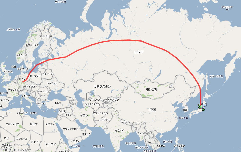 ヨーロッパに入り、バルト3国のエストニア上空で、2度目の食事になるが、毎度のおいしくないオムレツではなく、照り焼き味のモスバーガーが配られた。